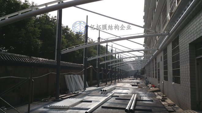 实验中学风雨棚膜结构长廊和张拉膜结构单车棚